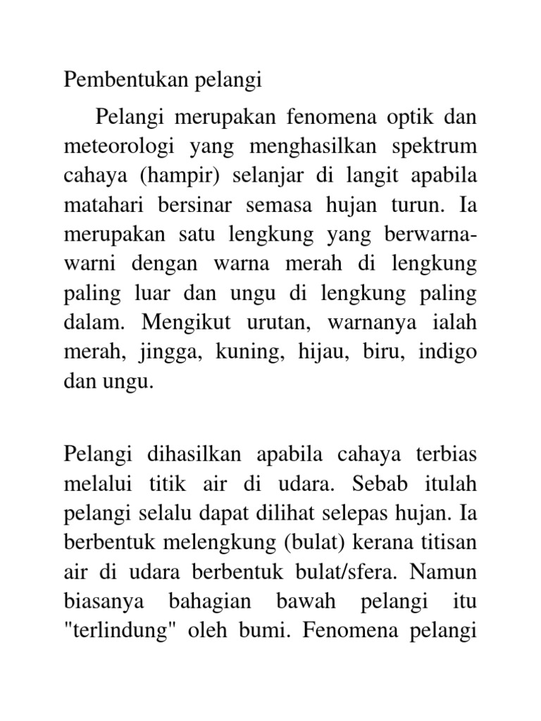Apa sih yang kamu ketahui tentang pelangi? Apalagi, pelagi tidak muncul setiap hari. Dari tabel di atas kita melihat bahwa warna merah memiliki panjang gelombang terpanjang dan frekuensi terendah sehingga posisinya akan selalu di atas karena gelombang yang panjang ini. Ii anggaran kos dan penyediaan bajet untuk melaksanakan projek. 7 warna pelangi, urutannya seperti berikut.