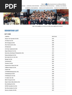 Exhibitors List Malaysia Gifts Fair 2019 Gifts Consumer Goods Clothing from imgv2-1-f.scribdassets.com Coolmax promotions sdn bhd has 36 ads on mudah.my. Muihua sdn bhd is the major wines and spirits importer and distributor in malaysia. Porcelain mug, coloured mug, mug, cenderahati seramik, cawan, ceramic mug,tableware malaysia , cup and saucer , plate , mymug mymug sdn bhd is the manufacturer of the ceramic mugs. Maju assets is best known for its bandar tasik selatan township development in cheras. About 1% % of these are palm oil, 1%% are instant coffee. Berikut merupakan maklumat iklan kerja kosong yang ditawarkan oleh majikan terlibat. Metal stamping of parts for electronics and electrical industry. Alibaba.com offers 1674 confectionery my sdn bhd products.